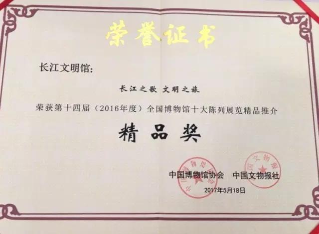 5月18日上午,2017年“5·18国际博物馆日”终评会暨颁奖仪式在北京举行。湖北省武汉市的长江文明馆榜上有名,被表彰为全国博物馆十大陈列展览精品。
