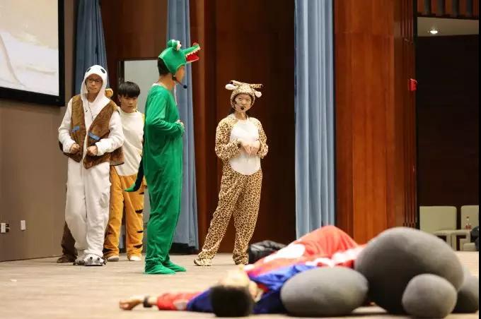 武汉市六中国际部带来了“凤之子历险记”情景剧,吉林街小学、武汉市六中及常青实验小学的同学和家长们以惟妙惟肖中英文形式向大家呈现了标本的独白。