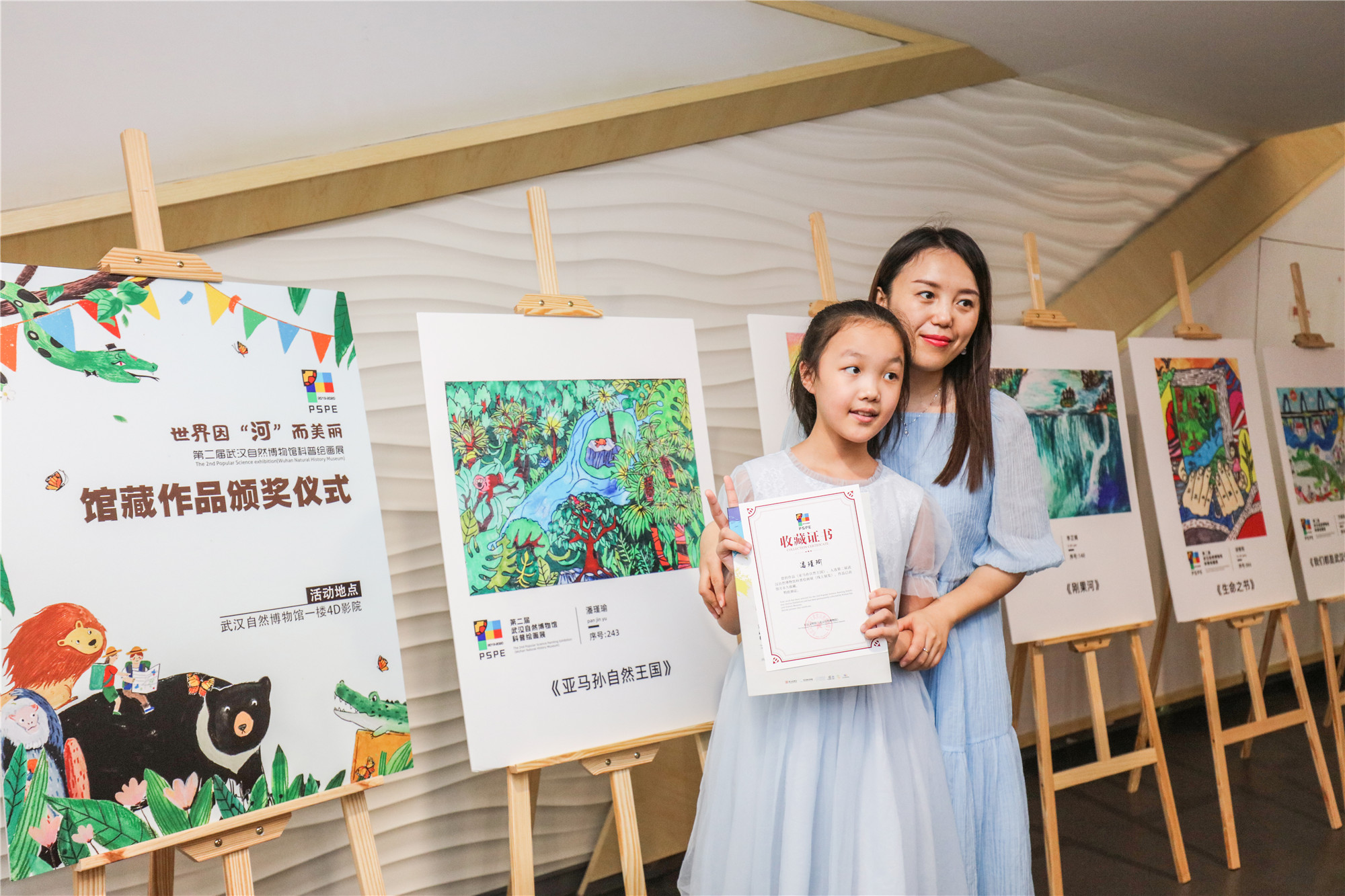 8月19日,第二届武汉自然博物馆科普绘画展馆藏作品颁奖仪式在武汉自然博物馆4D影院举行。长江文明馆(武汉自然博物馆)副馆长张肖雯及评审专家长江少年儿童出版社绘本编辑室副主任陈颖、特约嘉宾武汉动物园策划营运科负责人陈立云出席颁奖仪式并为收入馆藏的20幅作品颁奖。在颁奖仪式上,20幅馆藏作品的原画作首次集中与大家见面,部分作品的小作者还分享了创作心得。