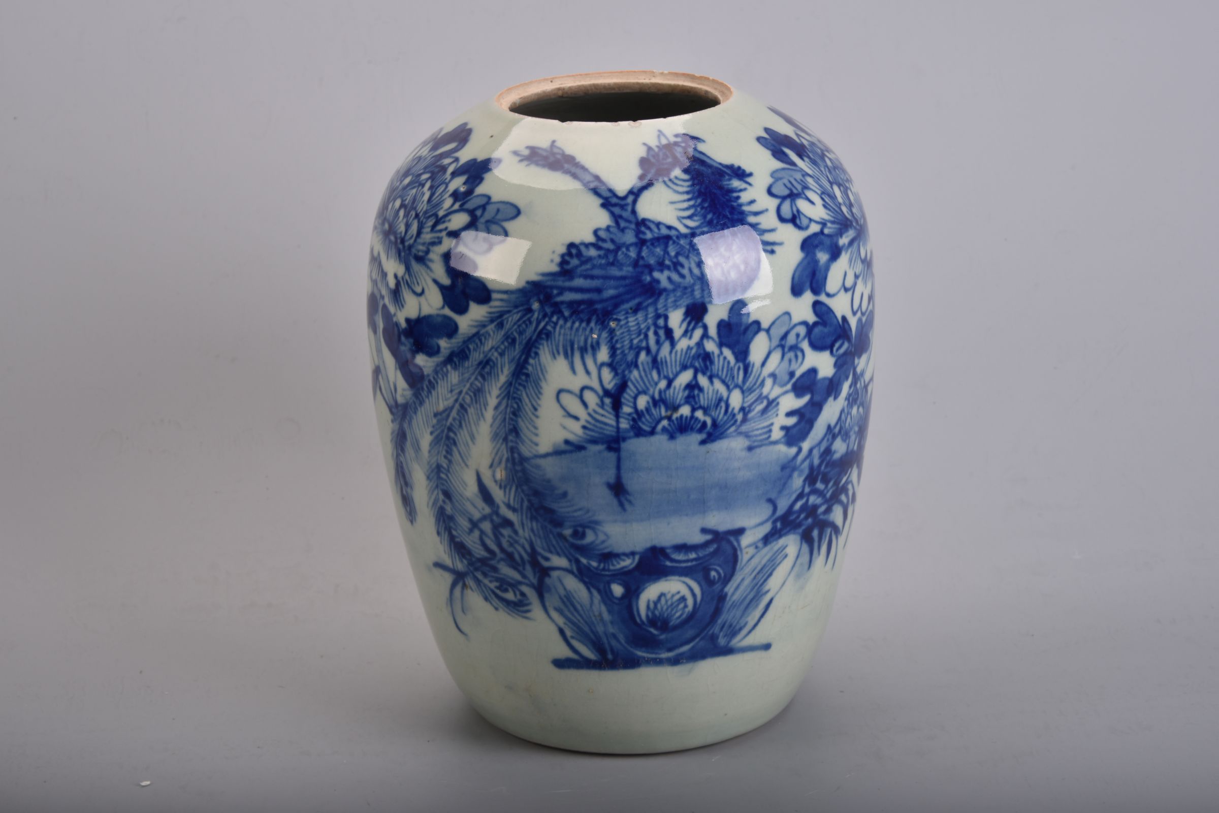 青花凤凰牡丹纹冬瓜罐