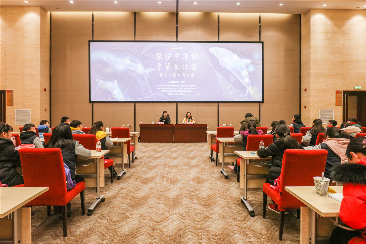 1月10日下午,第十八期大河讲堂在长江文明馆(武汉自然博物馆)多功能厅如期开讲,本期大河讲堂也是新年首次开讲。中国长江三峡集团有限公司中华鲟研究所主管、中华鲟保护领域的教育专家吴川老师以“保护中华鲟 守护母亲河”为主题,带领在场的百余名听众学习了解了军运会吉祥物“兵兵”的原形、长江濒危物种——中华鲟的前世今生。本次讲堂由长江文明馆(武汉自然博物馆)副馆长张肖雯主持。