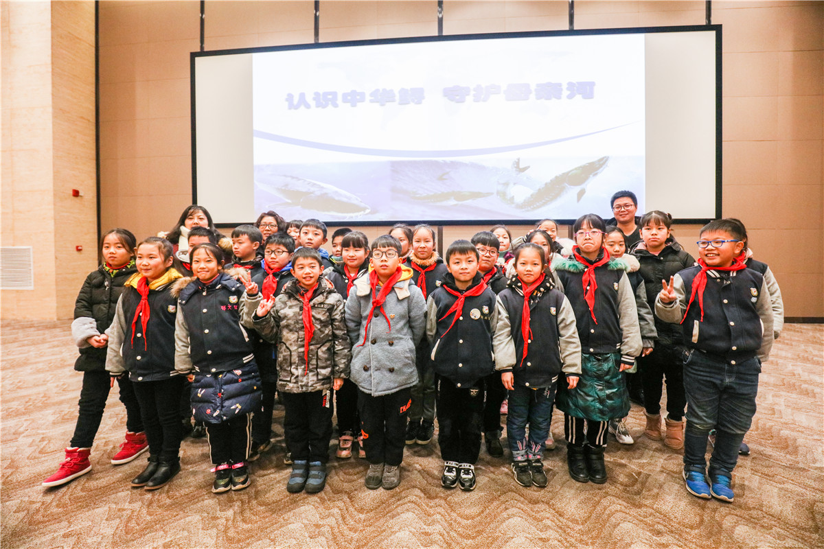 “中华鲟性格特别温和,嘴巴非常特别,它没有牙齿,嘴巴像伸缩的圆筒,吃相很斯文。”讲堂中,吴川老师从“认识中华鲟”、“中华鲟现状”、“中华鲟保护”、“长江其他珍稀鱼类现状”等方面出发,详细介绍了中华鲟等长江淡水濒危动物的进化过程、生存年代、生活习性、生存环境以及走向濒临灭绝的原因。