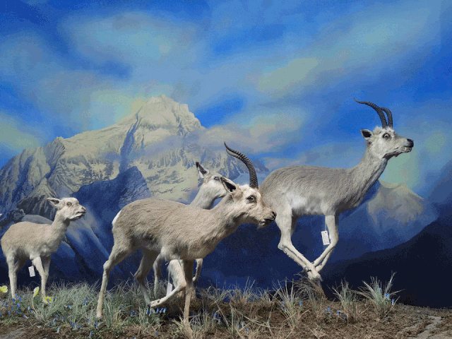 在青藏高原自然博物馆的隆宝滩生境柜,雪山、河流、湖泊、低矮的高寒草甸、飞翔的鹤,水洼里的蛙,共同构成了一幅和谐恬静的画面。这样的美好生活不知还能持续多久?